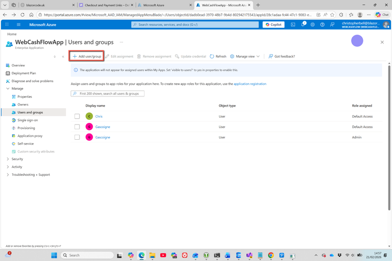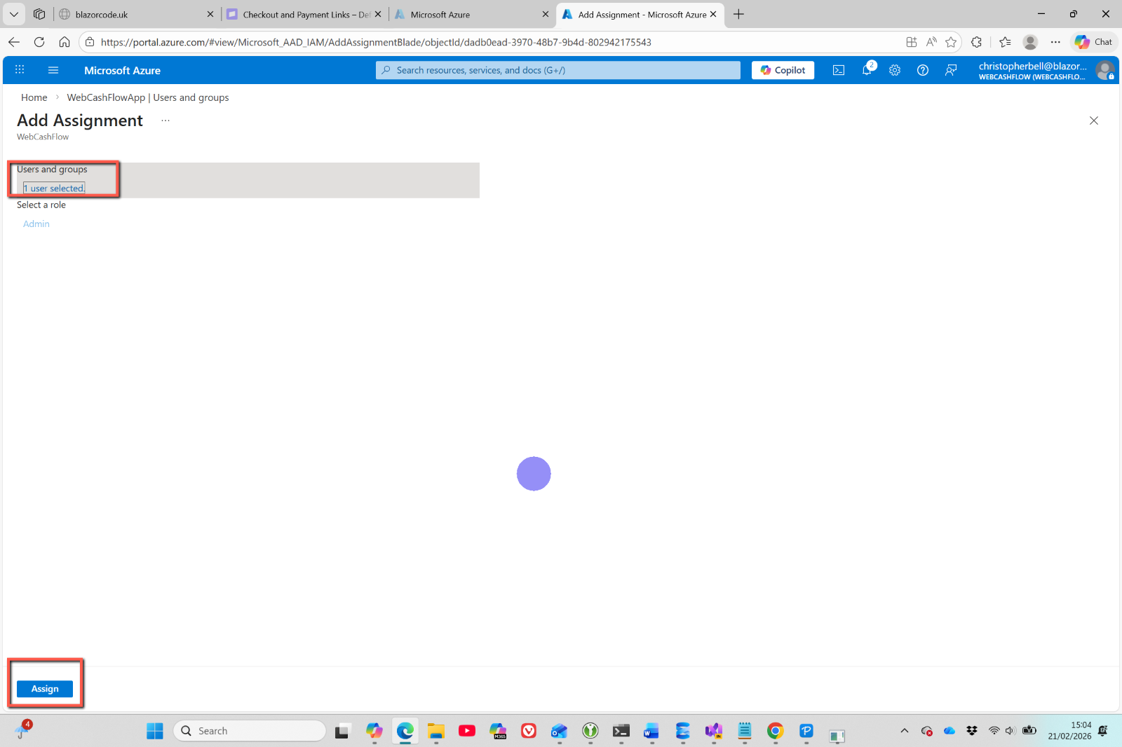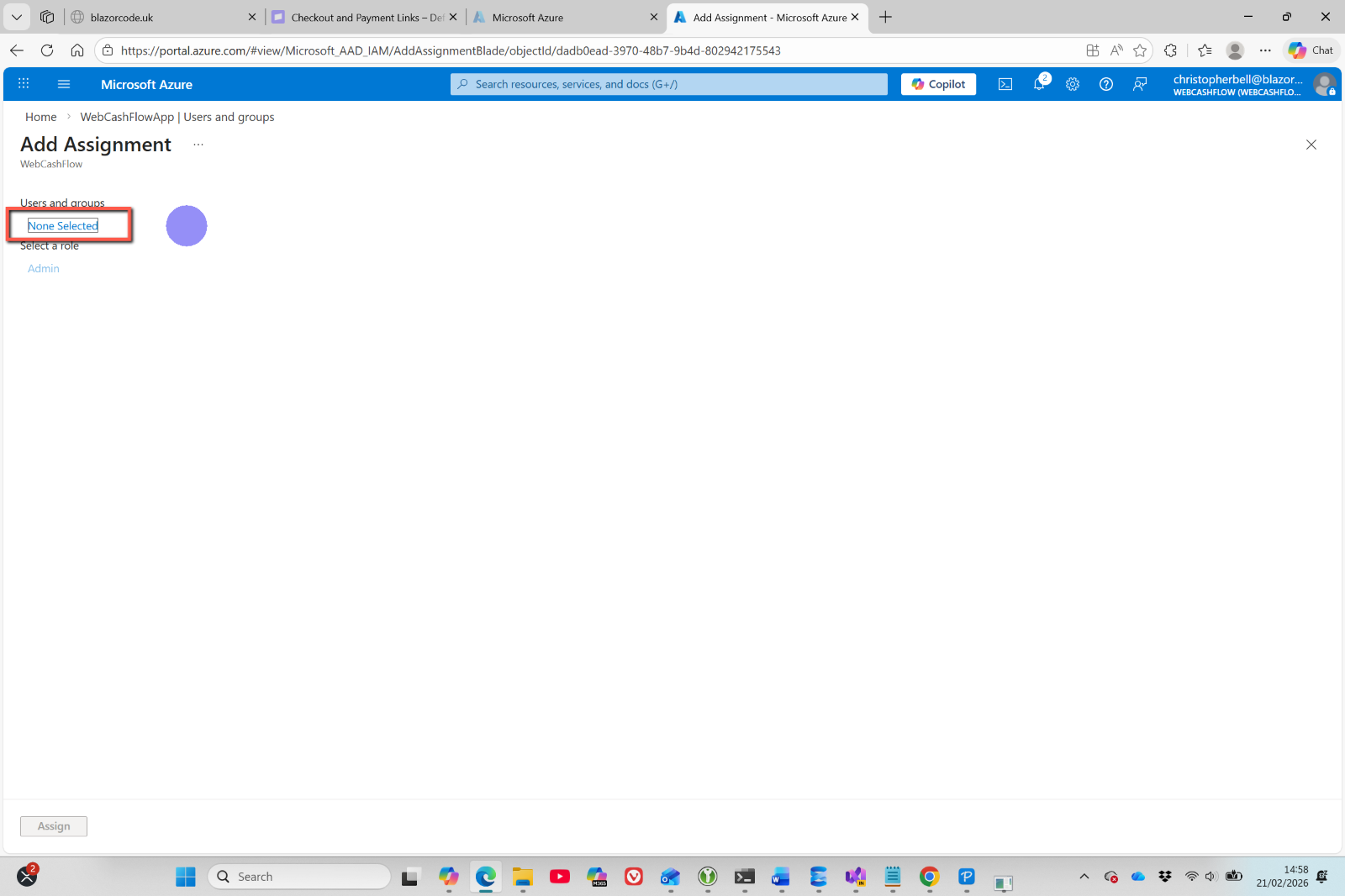 • In my case only 'Admin' was available as a role and was selected automatically.