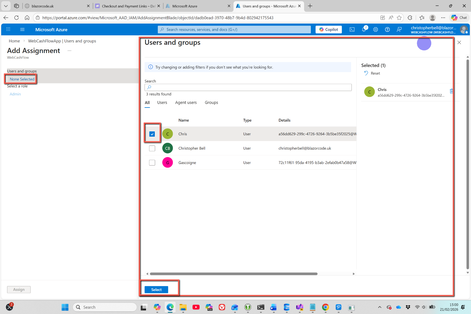 • This will open a pane to the right. Tick the users you want to assign to the role. Click 'Select' at the foot of the pane.