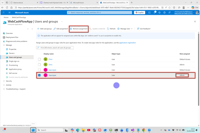 • Tick the user you wish to remove Admin rights from - make sure you select the user with Admin 'Role assigned'.