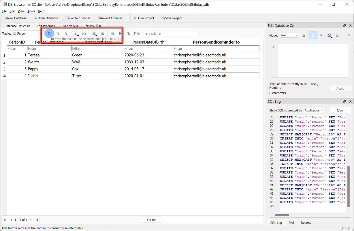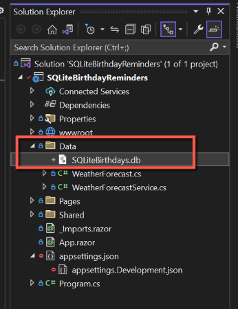 - SQLiteBirthdays.db will now be shown in the Data folder.