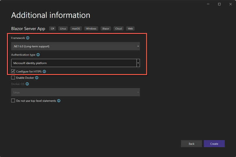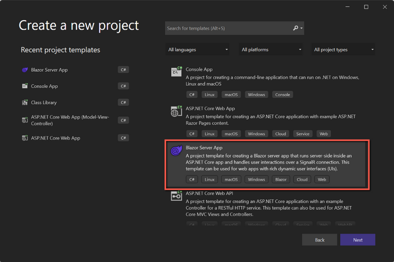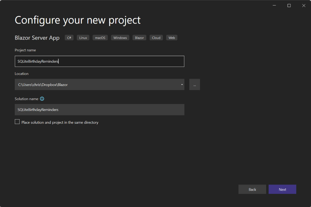 As previously, this project will be a Blazor Server project, the elements of which will include: