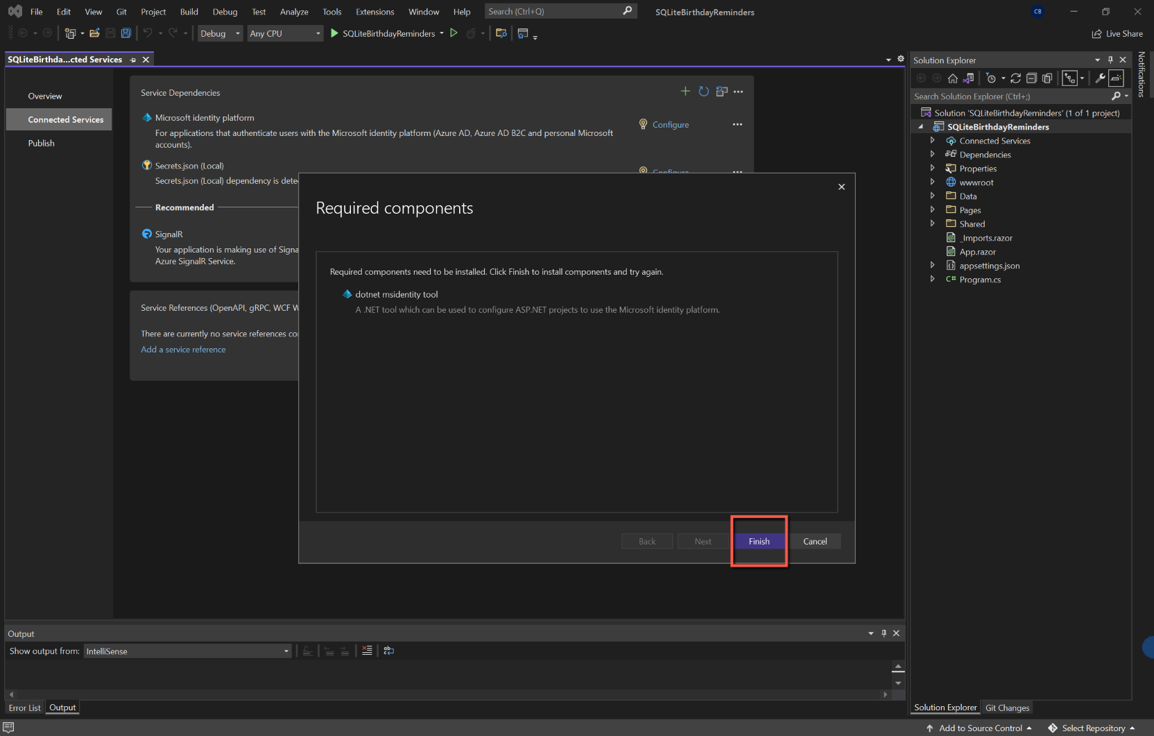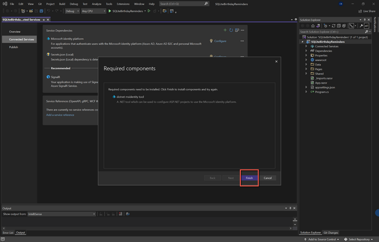 Follow the instructions at https://blazorcode.uk/birthdayreminders/project-setup-1/#authentication