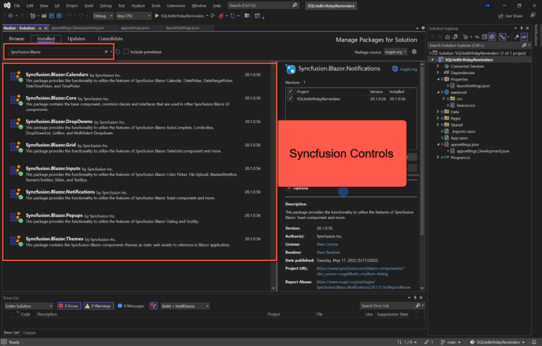 We have installed the Syncfusion NuGet packages, but there are a number of other steps that need to be completed. These are documented here, but briefly they are: