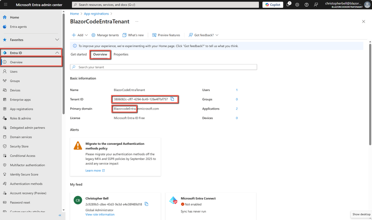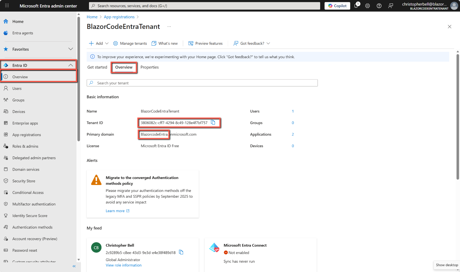 - Select Entra ID > Overview from the left-hand menu and then Overview