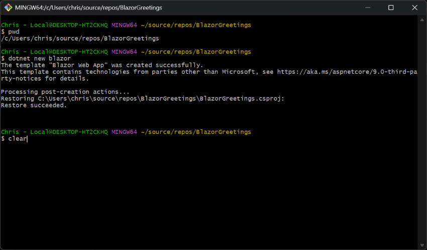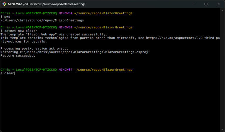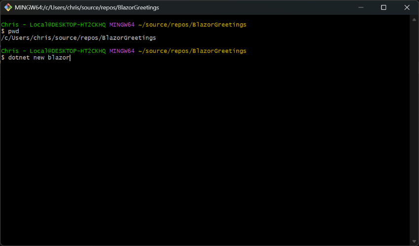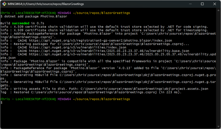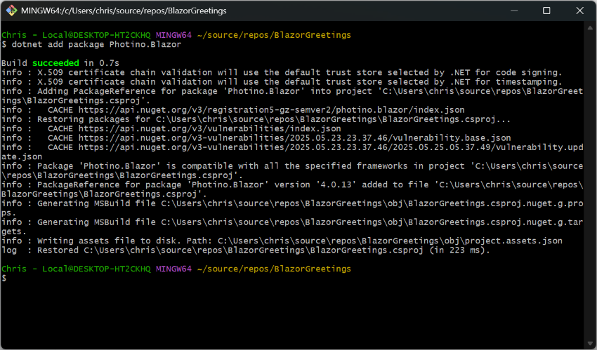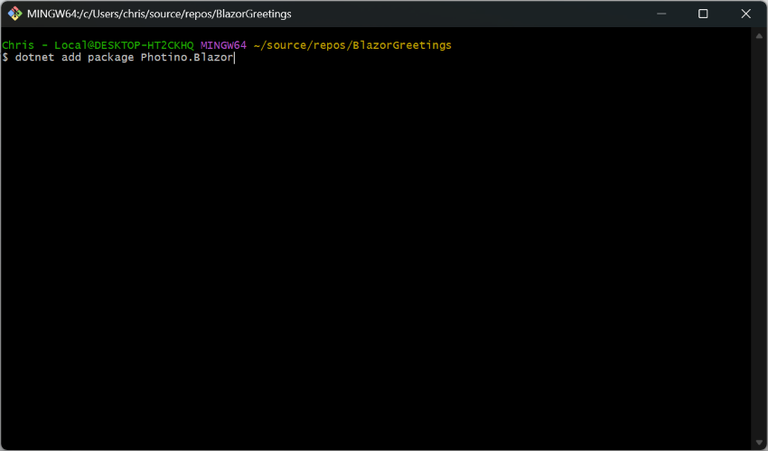 dotnet add package Photino.Blazor- Could close Git Bash at this point