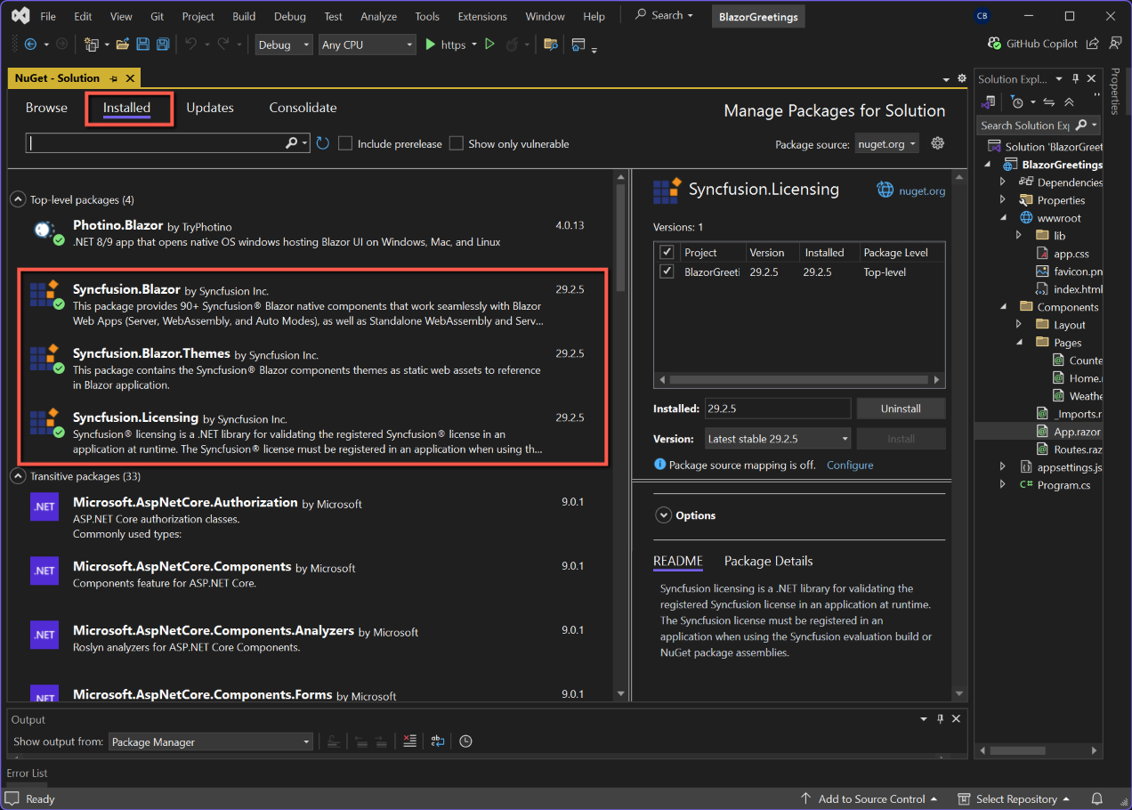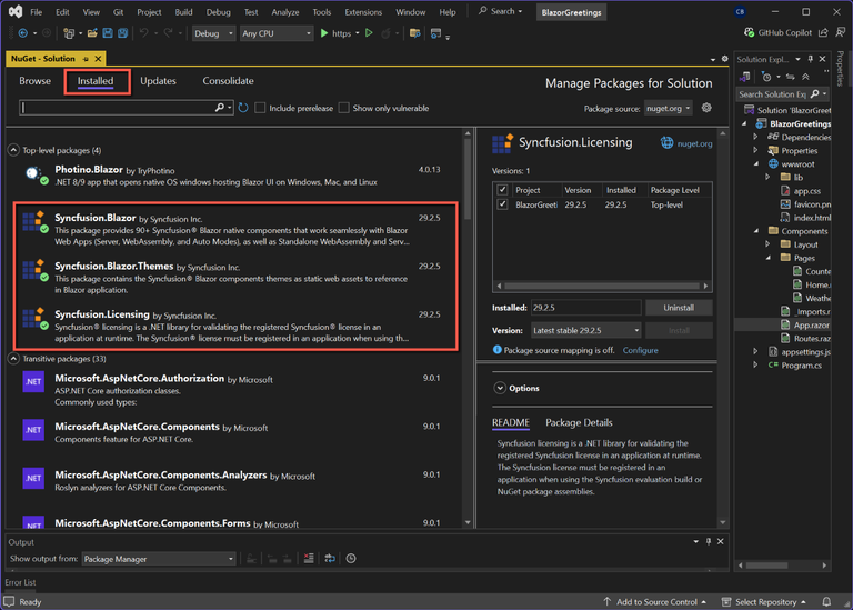 I would normally start a Blazor project by opening Visual Studio and creating a new Blazor server app, and then add the NuGet packages for Syncfusion controls.