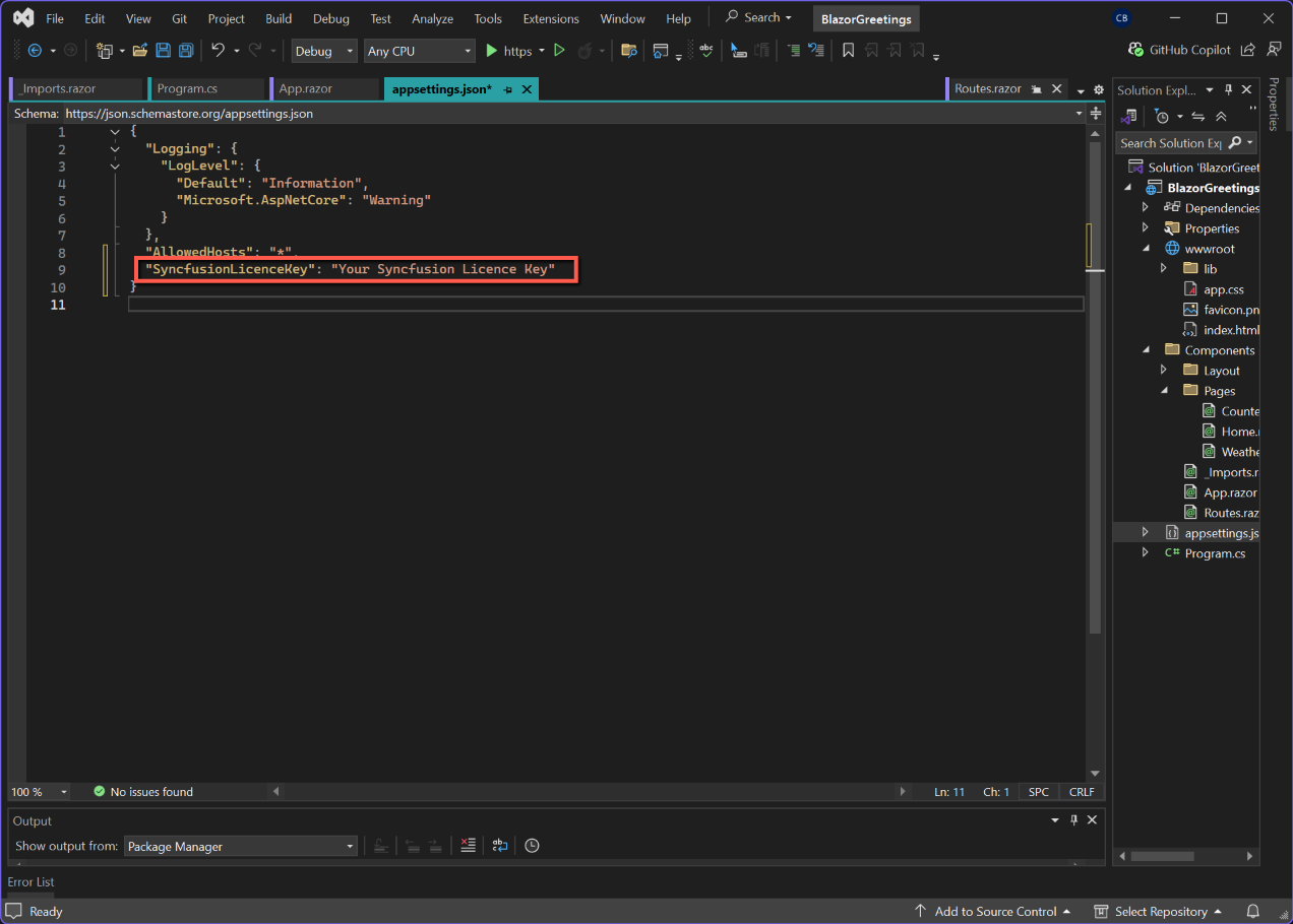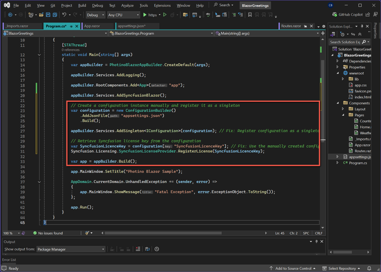 Notice that I had to include the code to enable the SyncFusion licence key to be read from appsettings.json.