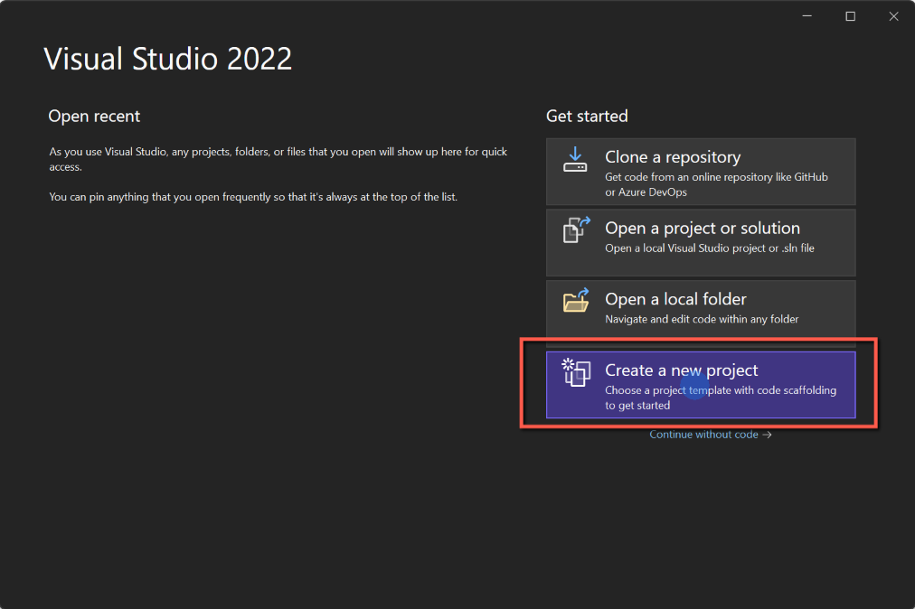 - Open Visual Studio 2022