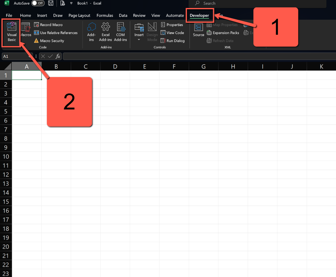 We need the Developer tab, which isn't displayed by default. If it isn't displayed you can add it to the ribbon by