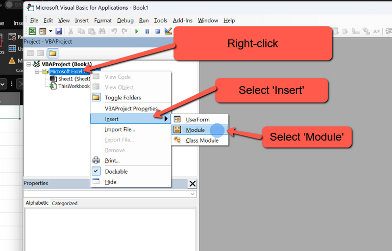 - Select 'Insert' > 'Module'