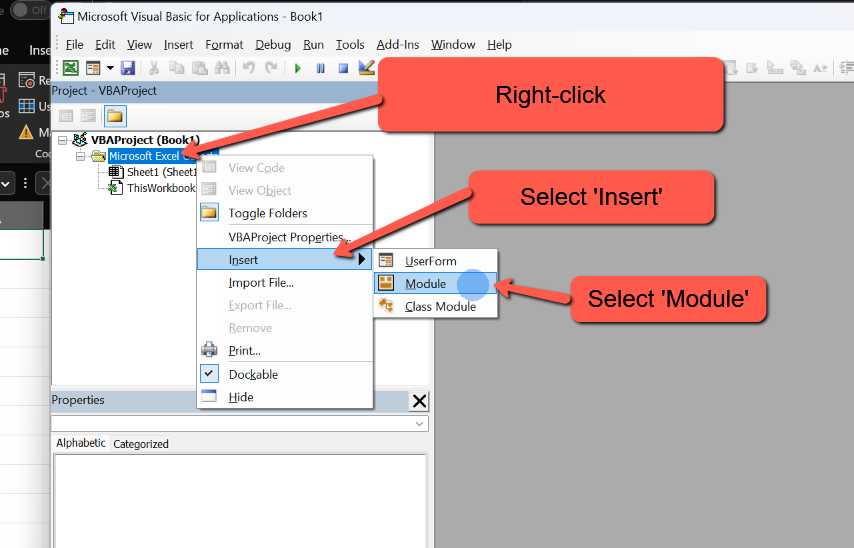 - Right-click on 'Microsoft Excel Objects'